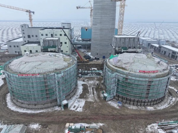 中綠可勝公司:阜康10萬千瓦光熱項目高低溫熔鹽儲罐順利完工
