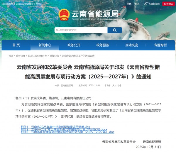 多元發展全釩液流、壓縮空氣等技術路線!云南省發改委、能源局印發《云南省新型儲能高質量發展專項行動方案(2025-2027年)》