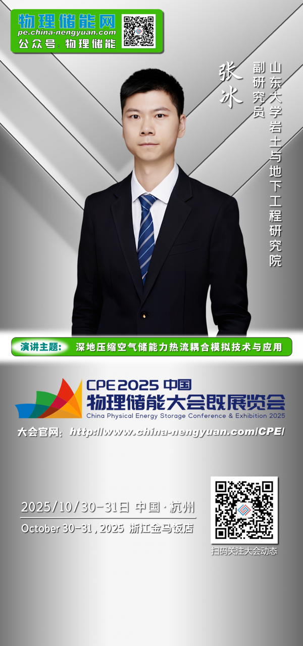 本次大會(huì)有幸邀請(qǐng)到山東大學(xué)巖土與地下工程研究院副研究員張冰出席。張先生將在大會(huì)現(xiàn)場(chǎng)發(fā)表題為“深地壓縮空氣儲(chǔ)能力熱流耦合模擬技術(shù)與應(yīng)用”的主題演講。