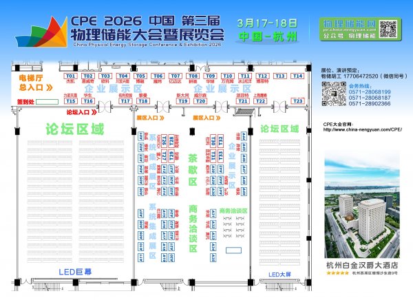 由物理儲能網(m.dsb6666.com)、中國新能源網(china-nengyuan.com)、全球儲能網(es.china-nengyuan.com)聯合旗下各平臺及業內同仁共同發起的《CPE 2026中國第三屆物理儲能大會暨展覽會》將于3月17-18日在浙江杭州白金漢爵大酒店隆重舉行。