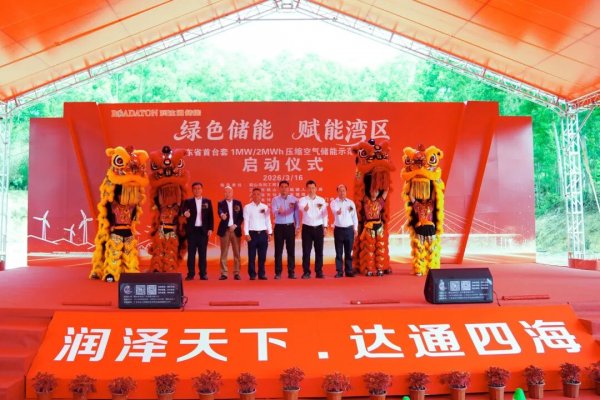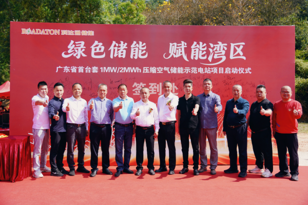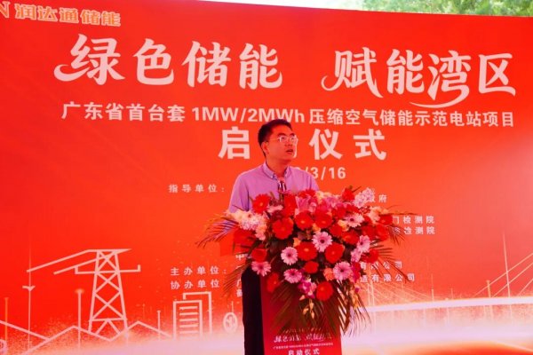 3月16日,廣東省首臺套1MW/2MWh小型壓縮空氣儲能示范電站項目啟動儀式在鶴山市活力科技產業園圓滿舉行。廣東省市場監督管理局特種設備處處長譚教千、梅州市市場監督管理局黨組副書記、副局長謝強、鶴山市鶴城鎮黨委書記、鎮長劉健明、鶴山市科工商務局副局長楊燦良、廣東省特種設備檢測研究院江門檢測院院長林達旋、廣東省特種設備檢測研究院順德檢測院院長楊景標、鶴山市鶴城鎮經濟發展辦公室主任何劍峰、鶴山市消防救援大隊副大隊長龍尚金,廣東省云志壓力容器制造有限公司、江門市潤達通儲能科技有限公司董事長梁德權,我商會會長黃乃南、執行會長陳善輝、常務副會長兼秘書長黃江波、常務副會長兼執行秘書長黃少軍、常務副會長梁先和、蔡振仲、楊華、陳超武,副會長楊偉東、理事梁善安,以及各商會代表、企業優秀代表、領導嘉賓們等出席了本次活動,共同見證新型儲能技術落地鶴山,助力地方綠色低碳高質量發展。