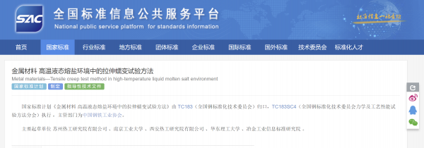 3月18日,由中廣核蘇州院主導(dǎo)的熔鹽儲(chǔ)能領(lǐng)域國家指導(dǎo)性標(biāo)準(zhǔn)《金屬材料高溫液態(tài)熔鹽環(huán)境中的拉伸蠕變?cè)囼?yàn)方法》成功獲批立項(xiàng)。