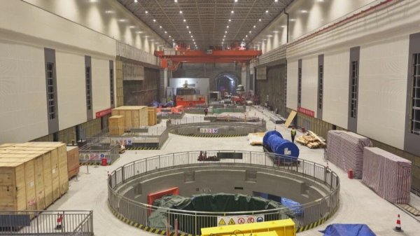 當前,項目整體工程已完成70%,各項主體施工穩步推進:地下廠房混凝土澆筑完工,正式進入機組安裝施工階段,這也是整個電站建設的關鍵一環。在地下廠房機組安裝現場,工人們正精細開展核心部件組裝作業。發電機組班長高武斌正帶著班組人員進行推力軸承、下端軸等核心部件預裝作業。據介紹,這些部件是機組平穩運行的“承重核心”,直接關系機組安裝質量和后續運行安全。按照既定計劃,我們已經完成了約30%到40%的工作量,預計再有一到兩個月就可以進入調試階段。