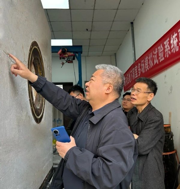 劉小剛一行5人參觀了寧波市能源地下結構重點實驗室,重點考察了夏才初教授團隊自主研發的壓氣儲能地下洞室多場物理模型試驗系統以及系列相關試驗設備。目前,這套試驗設備正在開展該工程項目的物理模型試驗。